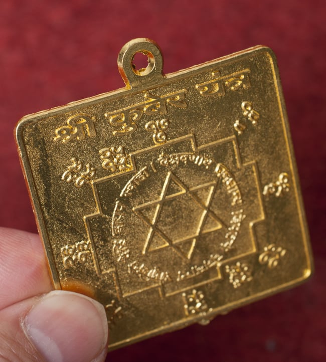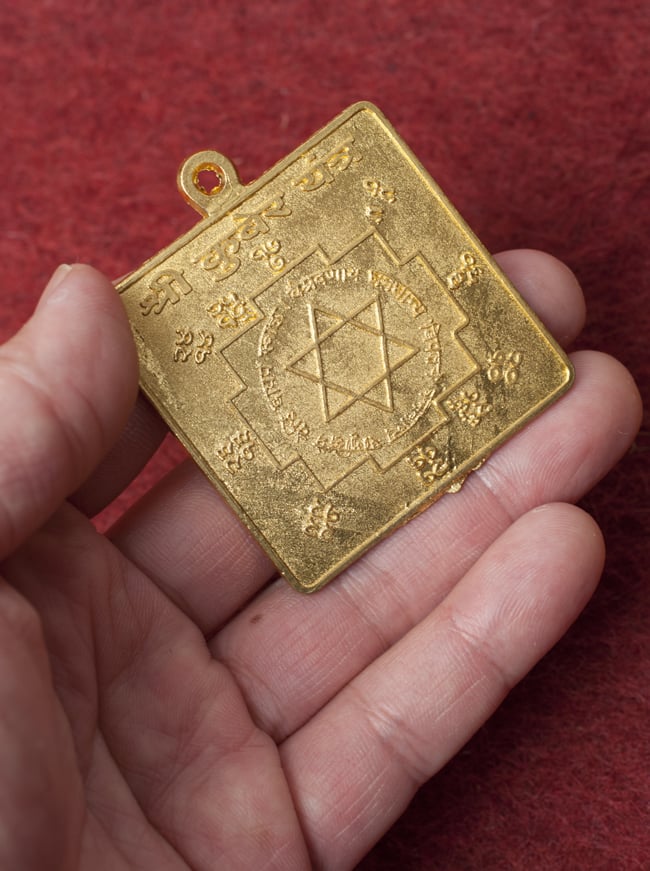 「ヤントラ」はインドで古くから「聖なる図形」として信仰されてきたもの。金メッキを施した銅板にヤントラが刻まれています。小さいプレートですので、家に飾ったり車の中に飾ったりしますが、こちらは常に身につけられるようにペンダント化したアイテムです。■信心深いインドの人々