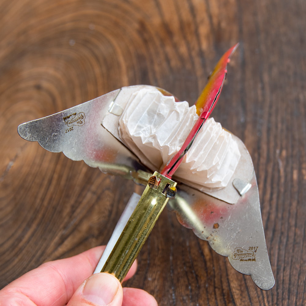 ブリキ製で羽ばたく所がけなげで良いです。