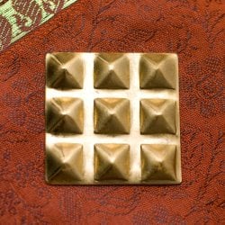 この「ナヴァグラハヤントラ Navagraha Yantra 」は9つの惑星を表したもので、中心は太陽、周りの8つのピラミッドが月・火星・水星・木星・金星・土星・ラーフ・ケートゥの惑星を意味します。インド占星術で非常に重要視されているヤントラです。