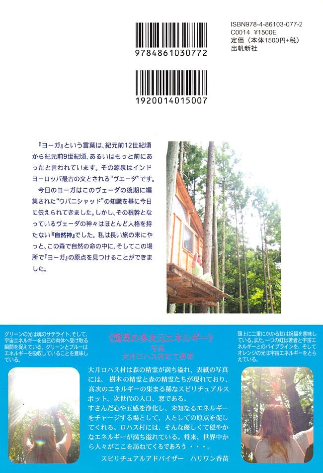 「ヨーガ」の起源は、紀元前12世紀頃から紀元前9世紀頃に遡り、あるいはもっと前からあったと言われています。その源泉はインドヨーロッパ最古の文献とされる「ヴェーダ」です。今日のヨーガは、このヴェーダの後期に編集された「ウパニシャッド」の知識を基に今日に伝えられてきたものです。その根幹となっているヴェーダの神々はほとんど人格を持たない“自然神”でした。「ヨーガ」の原点を、この森の自然の命の中で、この場所で、長い旅の末に私はやっと見つけることができました(プロローグより)。■目次より