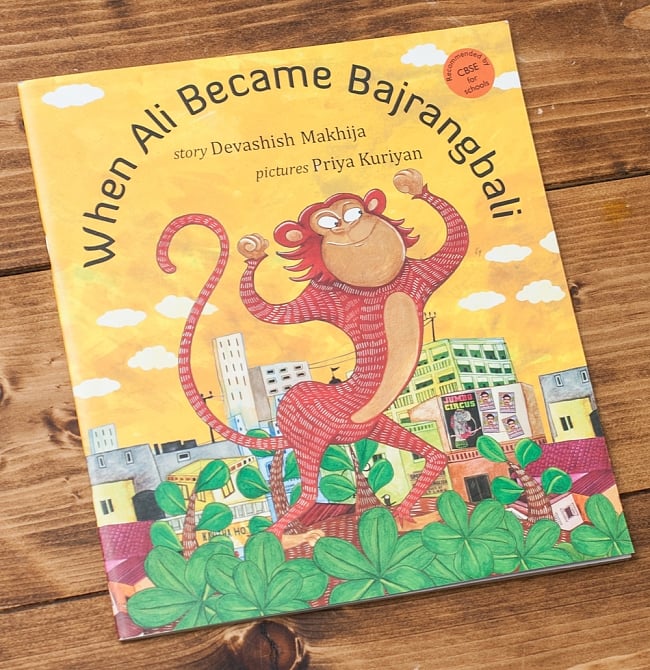 街中にそびえ立つ一本のガジュマルの樹。そこには大勢の動物たちが仲良く暮らしていました。ある日のこと、そこに鋼鉄の怪物たちが近づいてきました。それは樹を伐採しようとやってきたブルドーザーやショベルカーたちなのでした。このままではみんなの住処が失われてしまいます。そこでお猿の「アリ」君が講じた一案は…絵本のタイトルの一部になっている「Bajrangbali」はラーマーヤナの神話でも有名な猿の神様・ハヌマーンのこと。現代を舞台にしながらも宗教に深く根ざした絵本が作られるのはやはりインドならでは。猿のアリ君の知恵を活かした大活躍は読んでいてとても爽快!物語の最後には楽しいオチまでついていて非常に楽しめる一冊です。