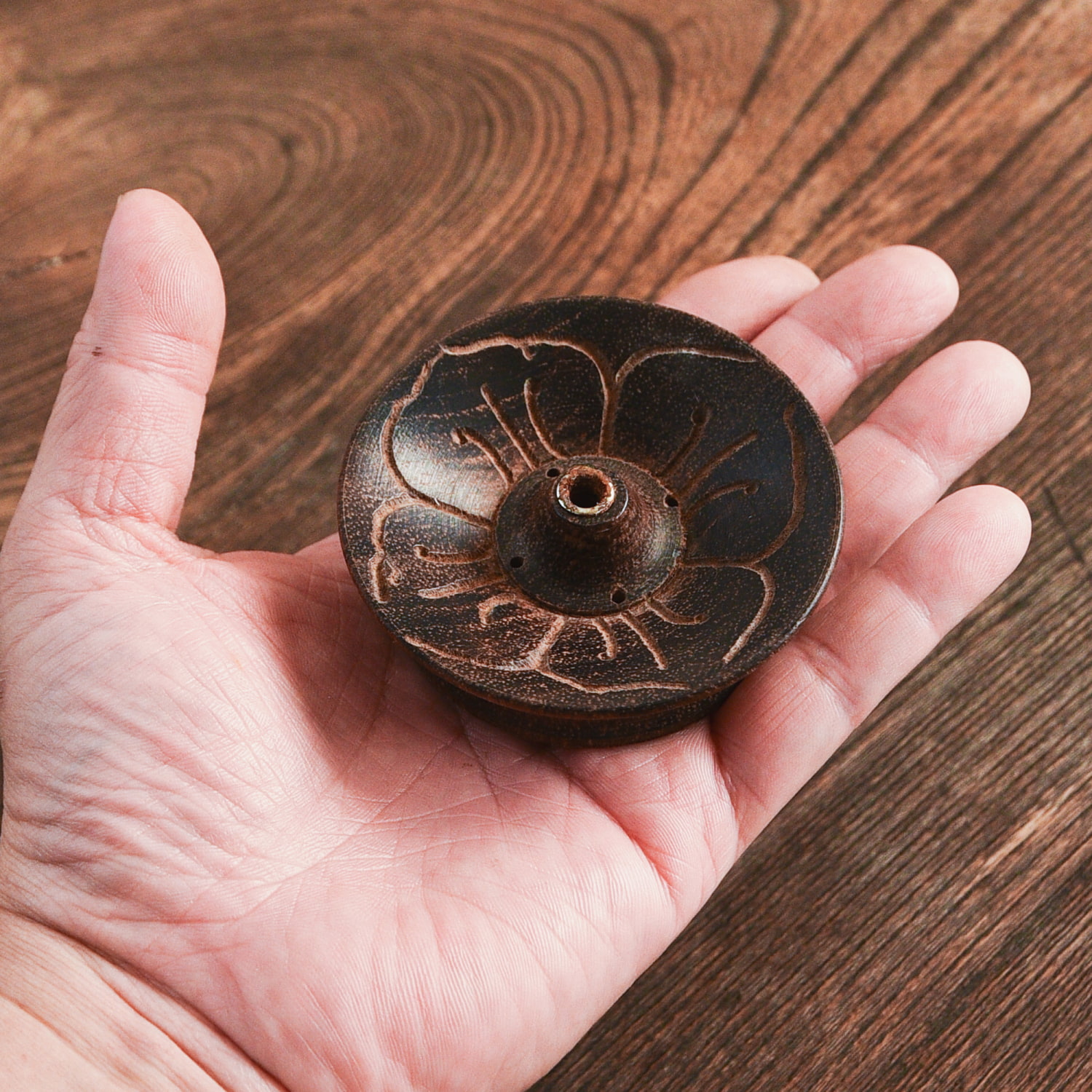 蓮の花のインド香&ネパール香立て(小)【直径約5.5cm】