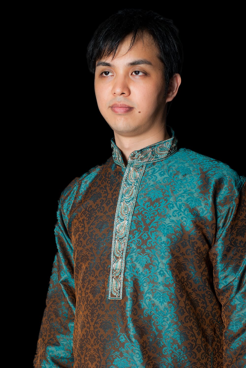 クルタ・パジャマ - グリーン(ペイズリー刺繍)【光沢生地】の類似商品