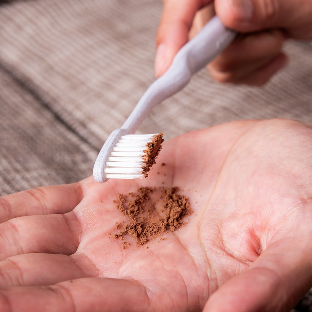 歯磨き粉の見た目は、細かいブラウン色をした粉末状で、見た目はまるでココアパウダーのようです。蓋を開けると生薬のような不思議な香りがしてきます。風味?も個性的ですが中には「美味しい歯磨き粉」という方もいらっしゃるようで、独特な香りと磨き心地が癖になりそうです。