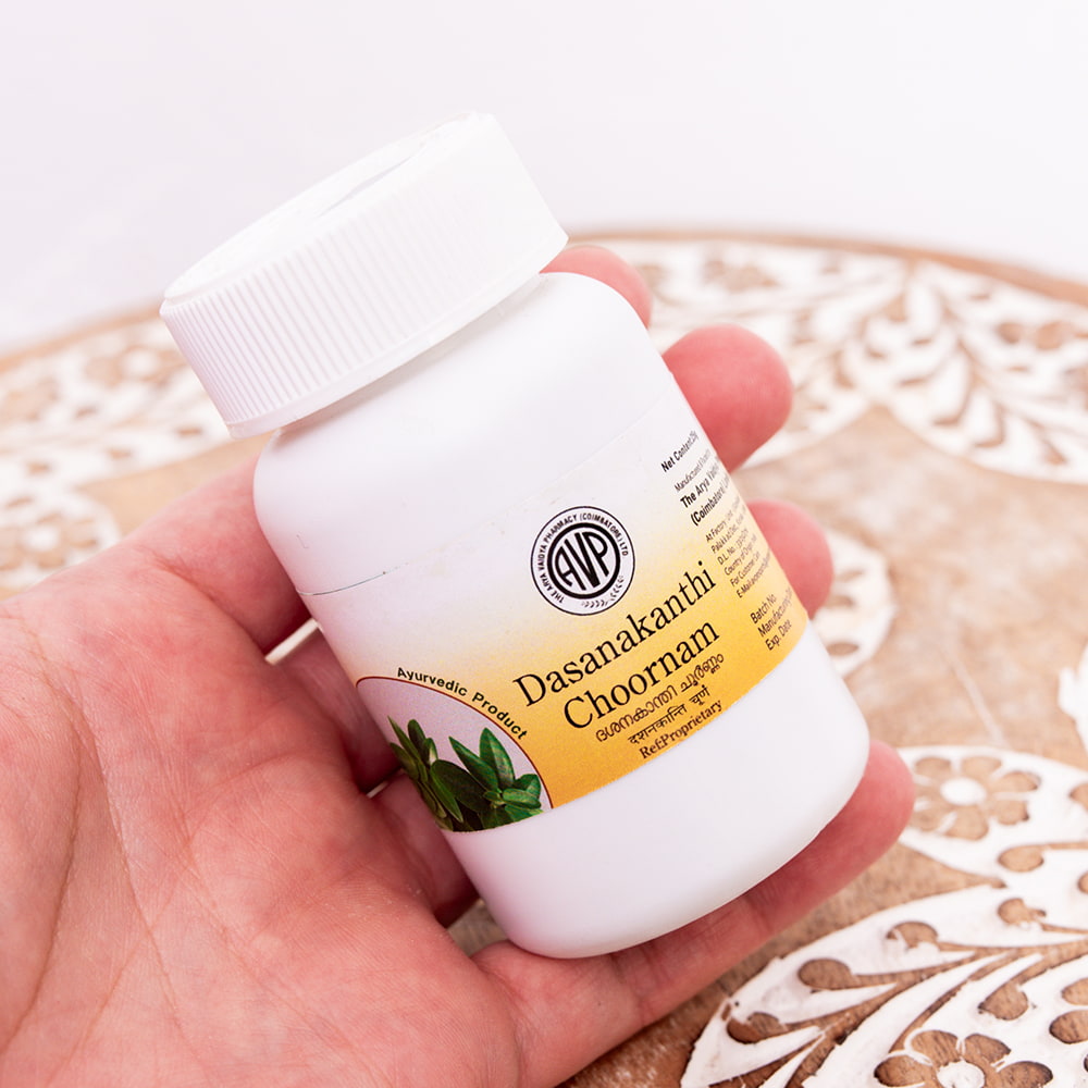 ![【10個セット】AVP ダシャナカンティ チュールナ[Dasanakanthi choornam 25g] 7 - サイズ比較のために手に持ってみました](https://www.tirakita.com/cosme/Photos/set_cosm_112_7b.jpg)
