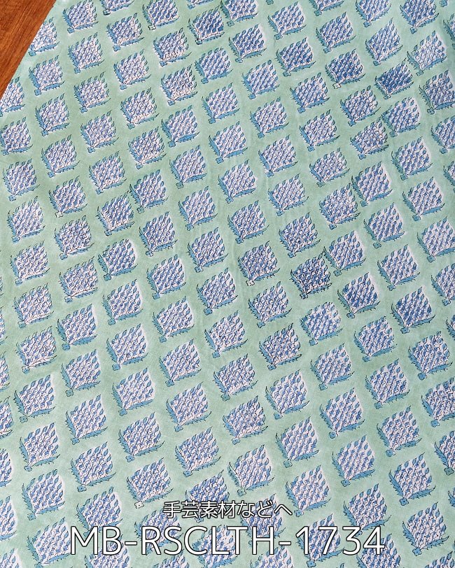 【5個セット】〔1m単位切り売り〕ジャイプル 職人手作り木版染め 色彩美しいボタニカルデザイン〔幅約106cm〕〔ミントグリーン系 小花柄〕 おしゃれ 生地 テーブルクロス 手芸素材などへ