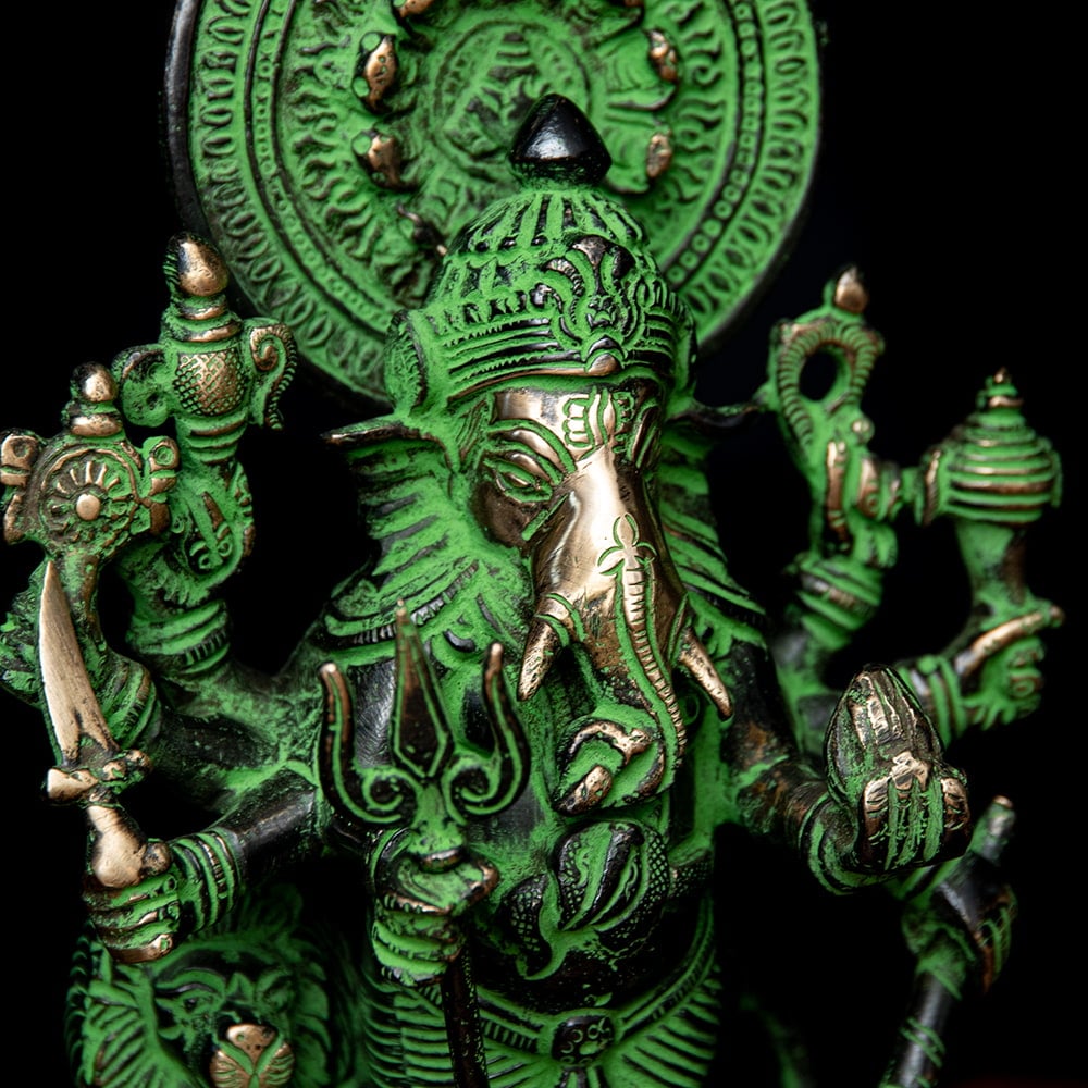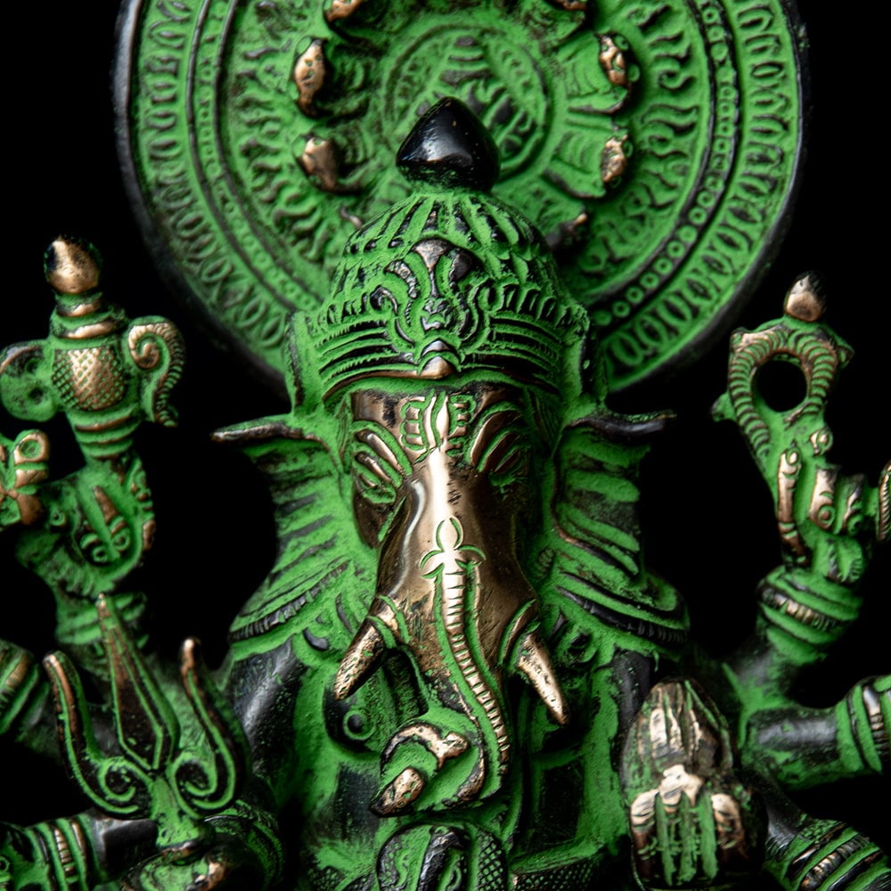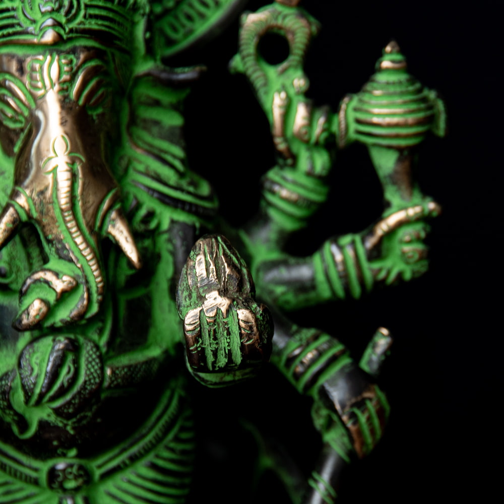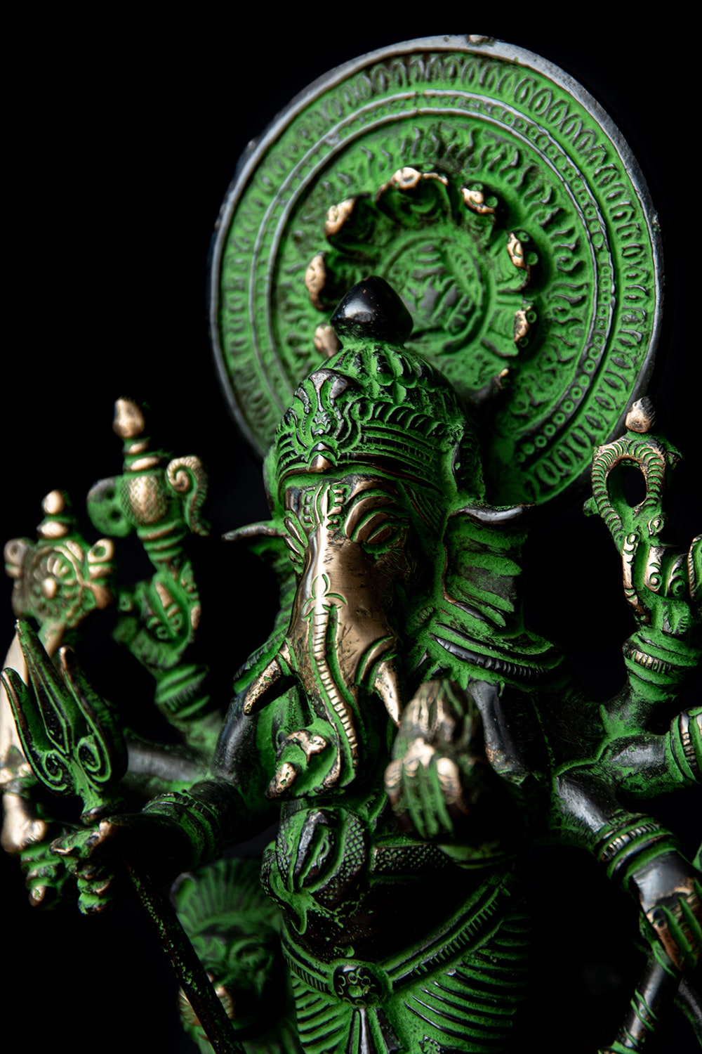 かわいらしく親しみ安い造形のガネーシャ像も多いですが、こちらは峻厳な印象を与える作り。じっくり対峙する価値のある非常に美しい立像です。