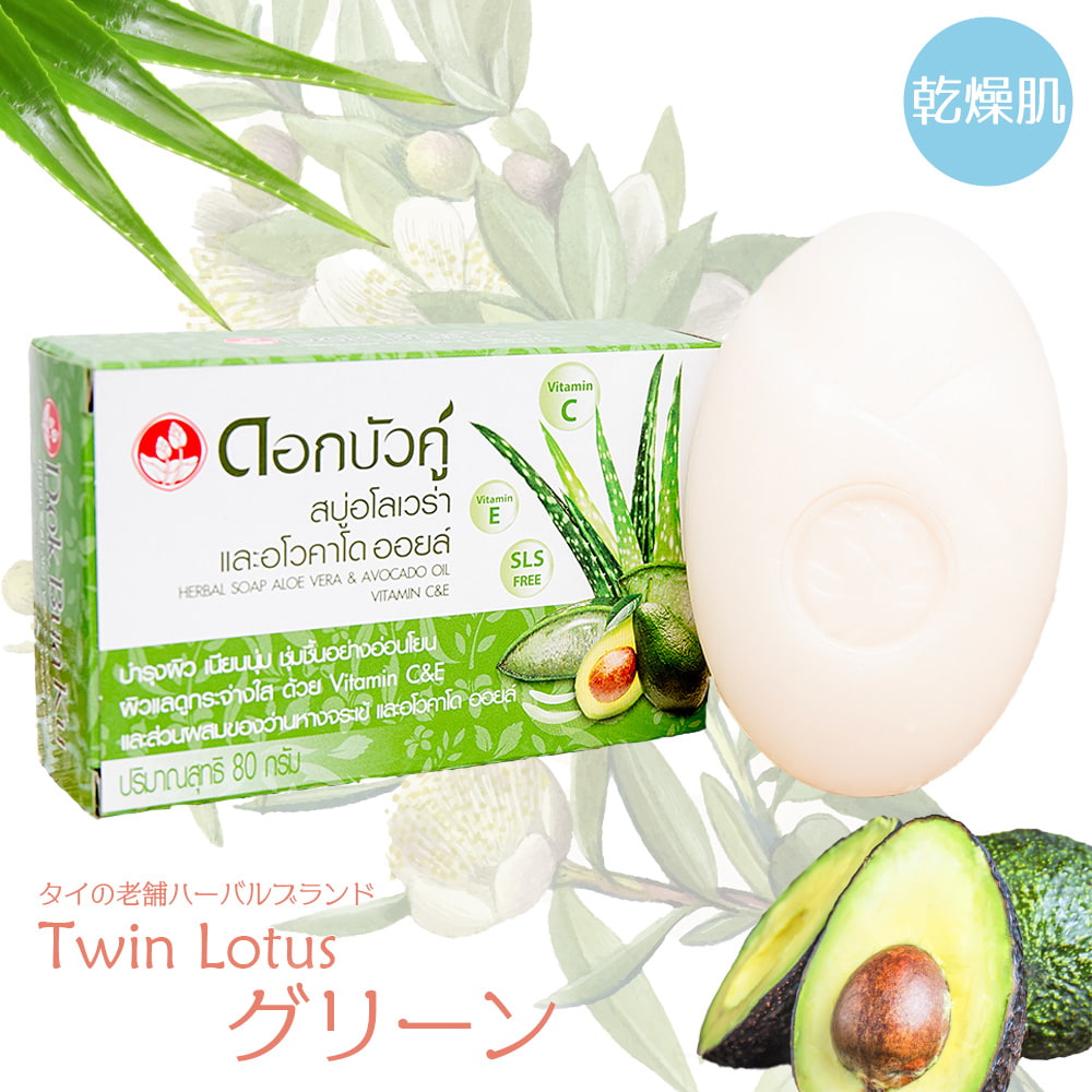 Dok Bua Ku ハーバルソープ グリーン - DOK BUA KU HERBAL SOAP ALOE VERA & AVOCADO OIL VITAMIN C & E 80g 【ツインロータス】 通販店