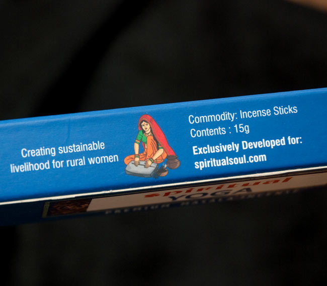 このお香は色々な社会的取り組みのもとに制作されています。例えば、工場で作らず、農村の人々に手巻きで作ってもらうことにより、農村の人々の継続的な収入に役立っているそうです。また子供の労働なし、揮発性の香料の不使用などが明記されています。このスピリチュアルシリーズは、ナチュラルエッセンシャルオイルを使用し、より豊かな香りを作り上げました。ストレスを減らし、リラックスしたムードを作るのに役立ちます。