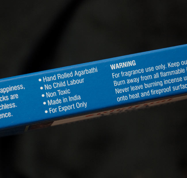 手巻きのお香、子供の労働なし、揮発性の香料の不使用、インド製で輸出用だそうです