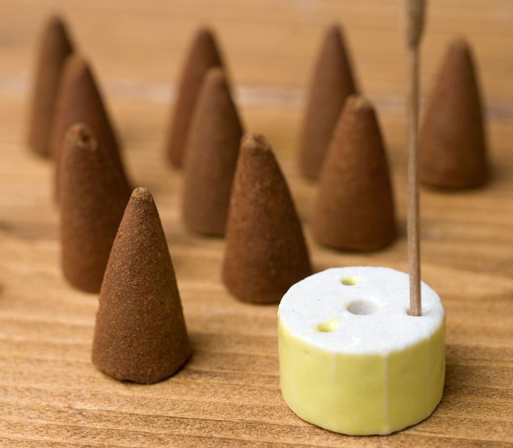 コーンタイプとスティックタイプがあり、お香立てがついているのもいいですね。