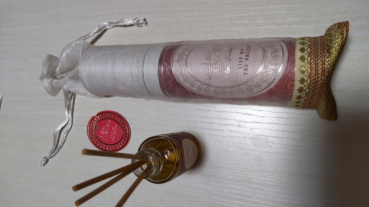 スティックは8本入っていて一度に瓶に入るのは4本あたりまでなので、なくなるまでに汚れてきたりしたら差し替えられて良いです。瓶が小さいので置いた一帯に、という訳にはいきませんが近くに行くと仄かな良い香りがします。お洒落な筒とオーガンジーの袋に入っていてすごく素敵だと思いました。