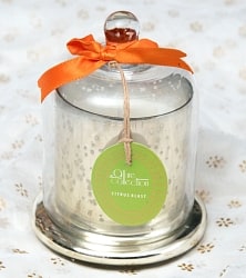 北欧雑貨を思わせるような素敵なデザイン、でも、やっぱりインドテイストなフレグランスキャンドルが登場しました。そのままお部屋の中に置いておいてもインテリアとして素敵なガラスの蓋付きのキャンドルです。蓋を開けるとふんわりとかぐわしい香りが漂い、キャンドルにぽっと火をつけると、銀色の穴から光が漏れます。光の漏れ方は、まるで星空のよう。