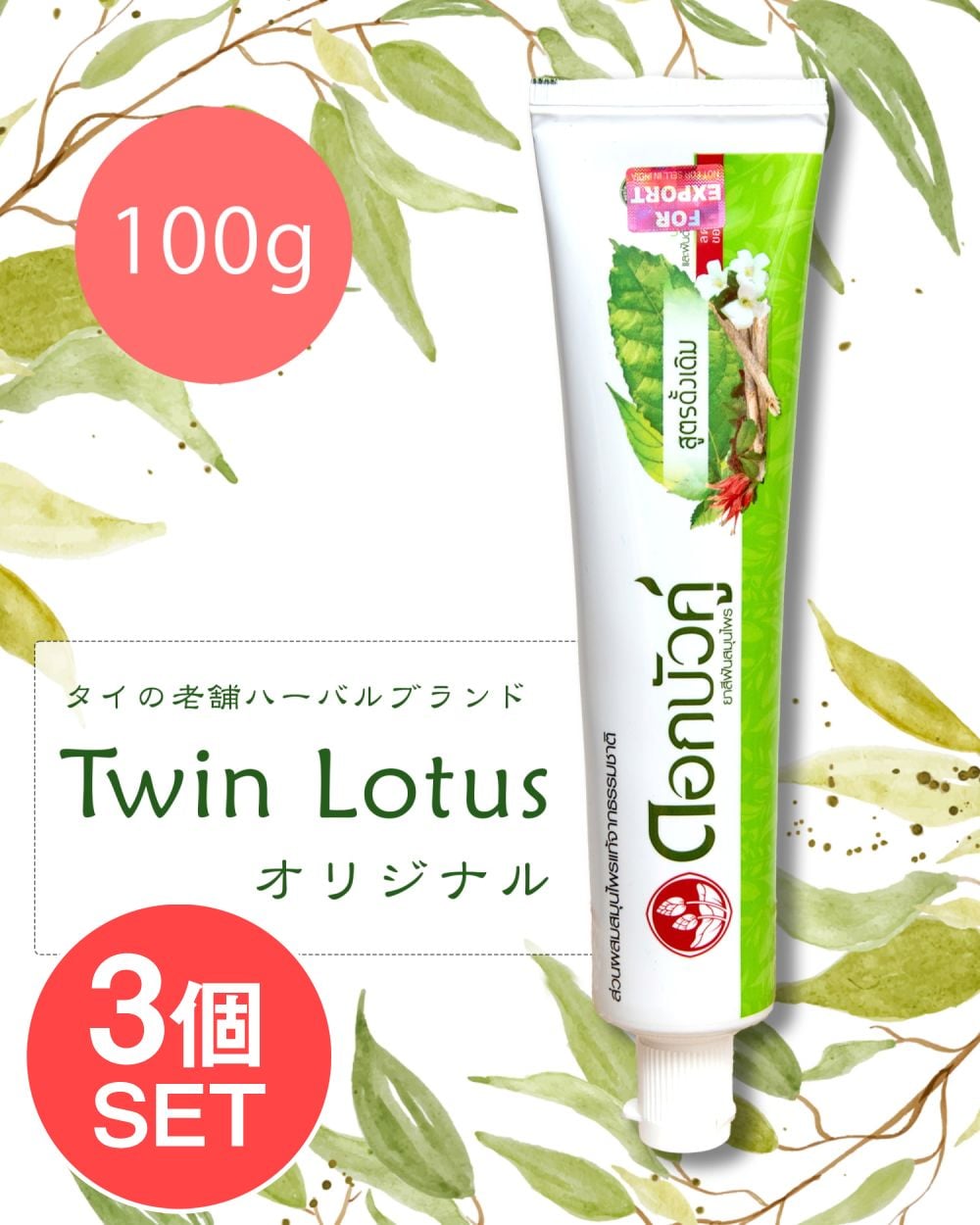 こちらの商品はお得な3個セットです。単品でご購入いただくよりも、お得なお値段になっています。■タイの天然ハーブ歯磨き粉「ツインロータス」