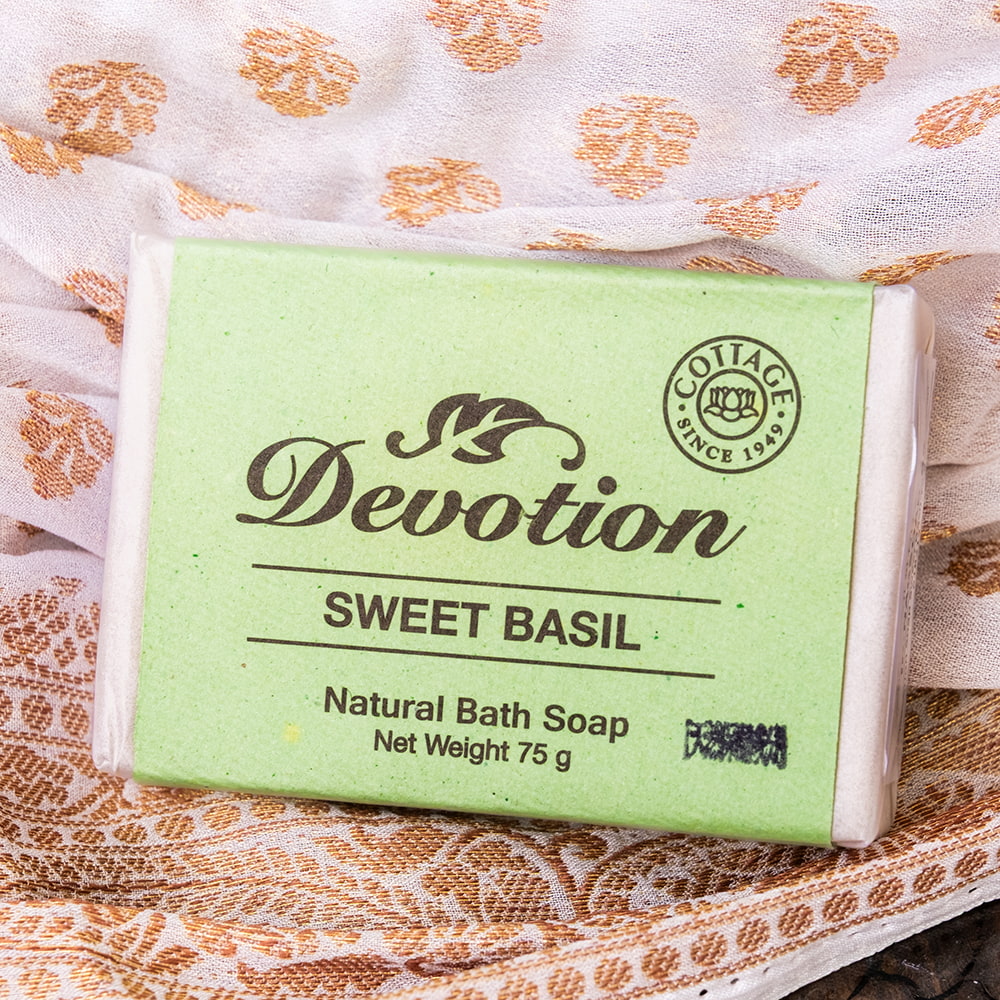 ![【6個セット】Devotion ナチュラル トゥラシーダル バス ソープ[75g] 2 - スイートバジルが配合されたトゥラシーダル バス ソープを正面から撮影しました。スイートバジルは自然素材由来の香料、お肌を健やかにする成分として配合されています](https://www.tirakita.com/ind_ins/Photos/set_cosm_88_2b.jpg)