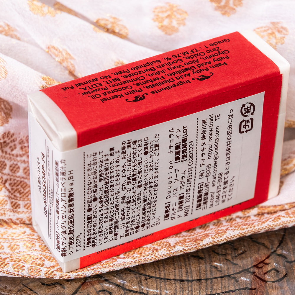 ![【6個セット】Devotion ナチュラル ダルチニ バス ソープ[75g] 4 - 裏面です。こちらの裏面に法定表示のシールが添付されます。](https://www.tirakita.com/ind_ins/Photos/set_cosm_94_4b.jpg)