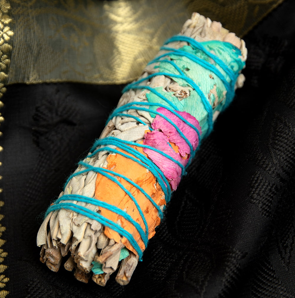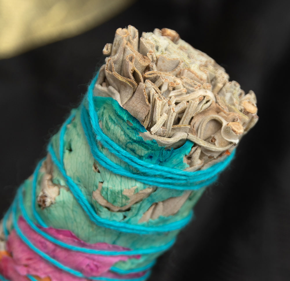 カリフォルニア ホワイトセージ バラのはなびら付き 無農薬 ワンド バンドル スティック [10cm 25g程度]スマッジング 浄化 x 3個