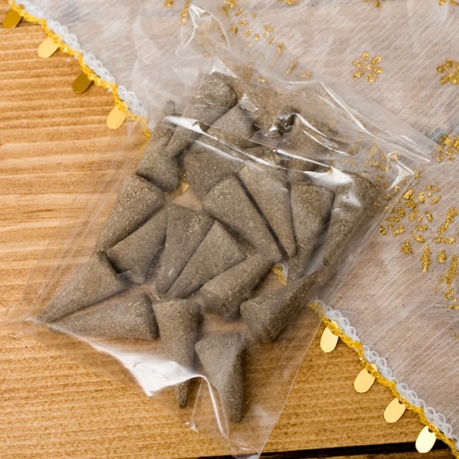このようなコーン型のお香が入っています。(こちらは同型のサンプル品のため、色が異なる場合もございます。)