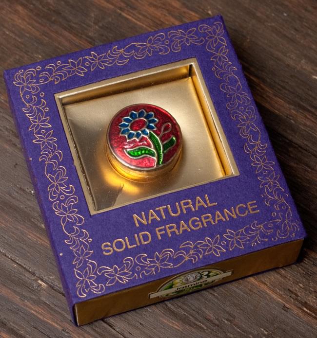 七宝で装飾された金属ケース入りです。クリーム・フレグランスを使い終わった後は指輪入れやピルケースとしてお使いいただけます。紫の化粧箱入りですのでギフトにぴったりです。インドからのおみやげや、好きな人へのプレゼントに最適だと思います。![【6個セット】クリーム・フレグランス[ブラス] - ジャスミンの写真](https://www.tirakita.com/ind_ins/Photos/ind_ins_544.jpg)