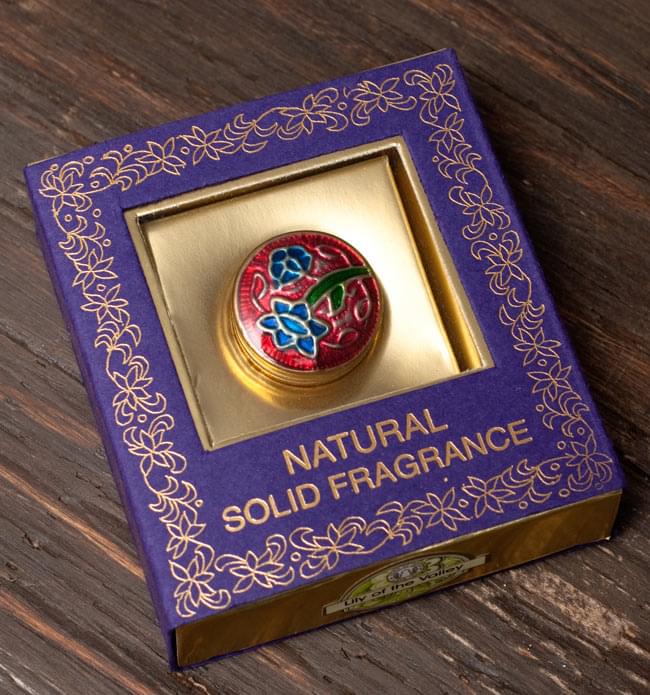 七宝で装飾された金属ケース入りです。クリーム・フレグランスを使い終わった後は指輪入れやピルケースとしてお使いいただけます。紫の化粧箱入りですのでギフトにぴったりです。インドからのおみやげや、好きな人へのプレゼントに最適だと思います。![【6個セット】クリーム・フレグランス[ブラス] - スズランの写真](https://www.tirakita.com/ind_ins/Photos/ind_ins_546.jpg)