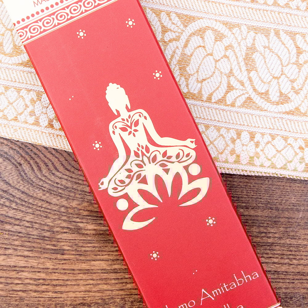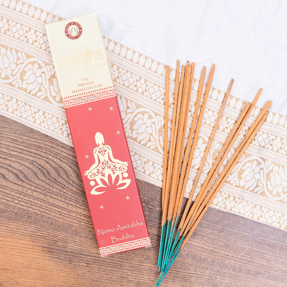 このマントラは、無限の光、無限の生命、無限の叡智を意味します。悪いカルマを破壊し、瞑想中に心を集中させます。頭と心がすっきりするような凛とした香りです。