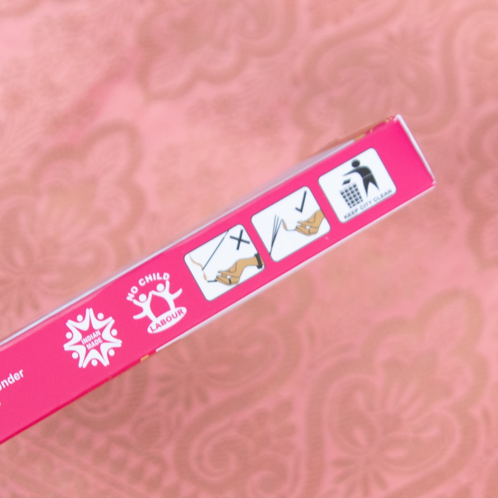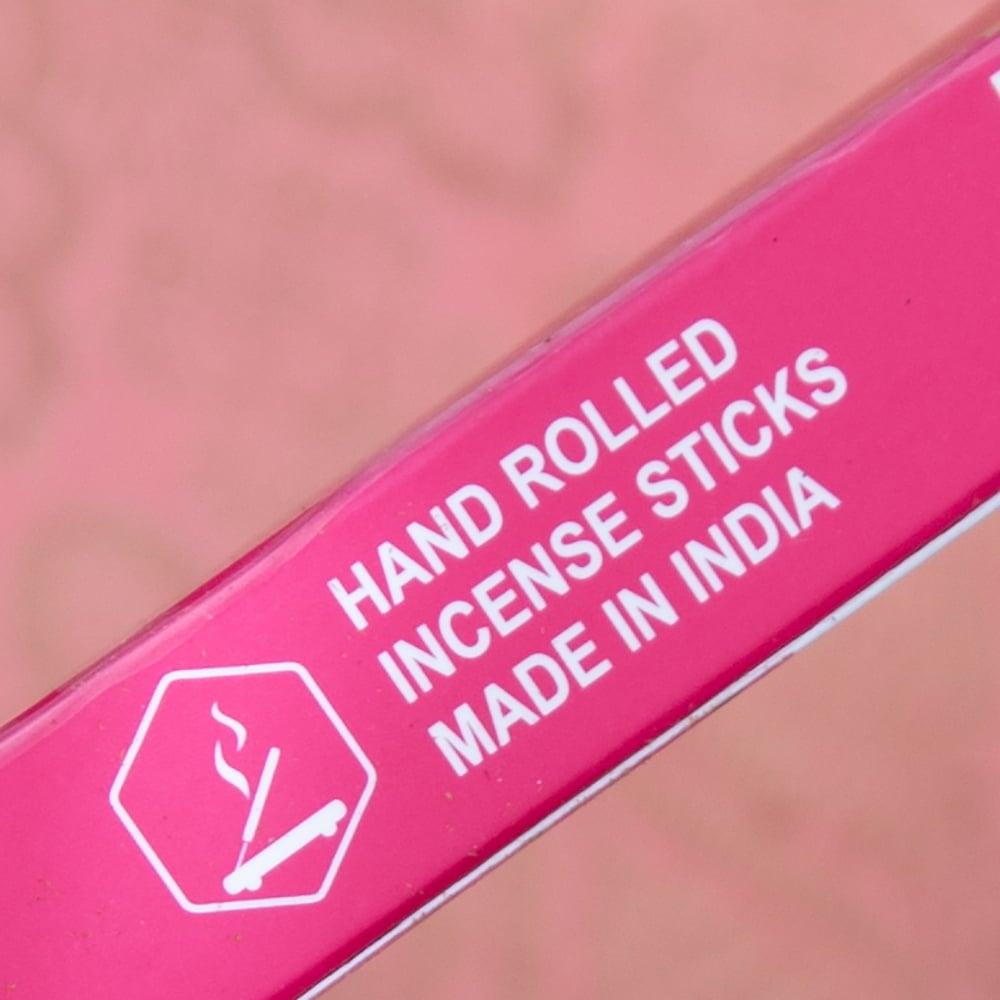 インドでは高級なお香と普通のお香を見分ける非常に簡単な方法があります。その方法とは、お香の表面に香りパウダーが付いているかどうかを見る方法です。もちろん、色々なお香がありますので一概にパウダーが付いていれば高級というわけではありませんが、お香の表面にパウダーが付いているということは、通常のお香よりも一手間かけている訳で、その分、人件費も材料代もかかるのです。こちらのお香もそんな高級インセンスの一つ。「Positive Energy」という名前のこちらもいい香りのパウダーがびっしり付いています。
