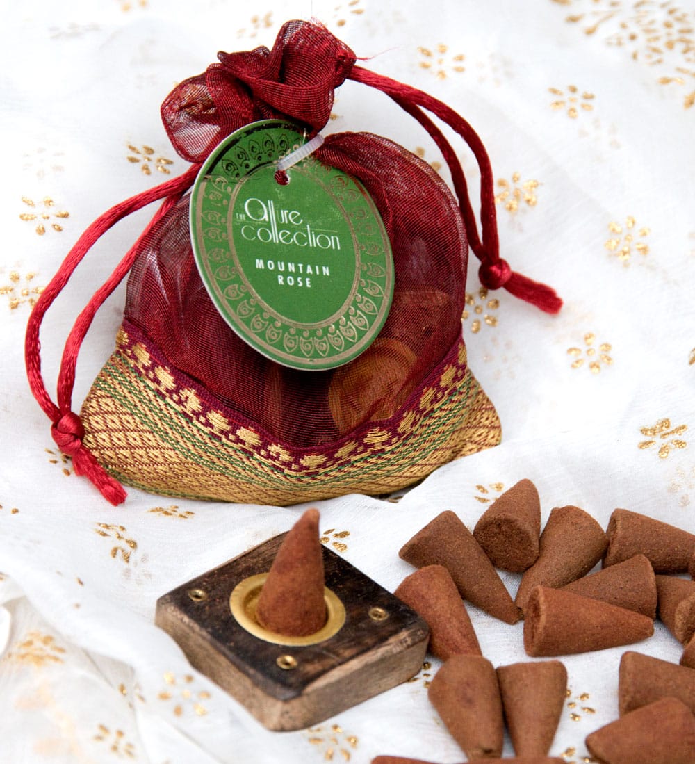 オーガンジーの袋入りコーンお香セット -Mountain Rose- x 6個