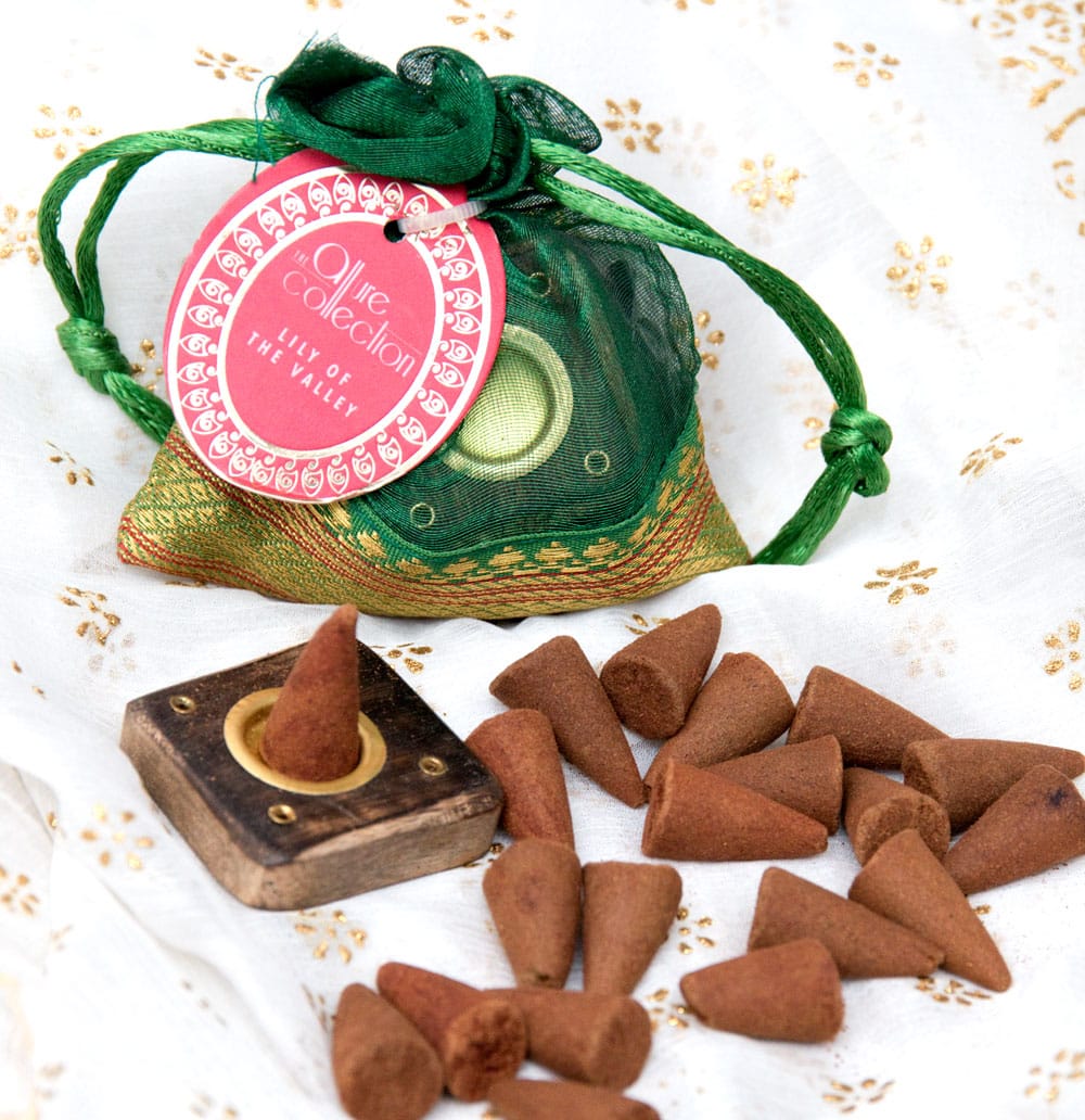 オーガンジーの袋入りコーンお香セット - 谷に咲く百合 x 6個