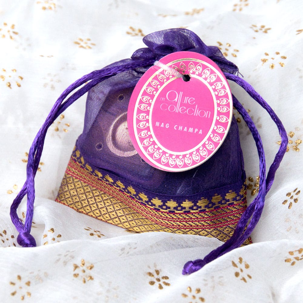 オーガンジーの袋入りコーンお香セット - ナグ・チャンパ x 6個