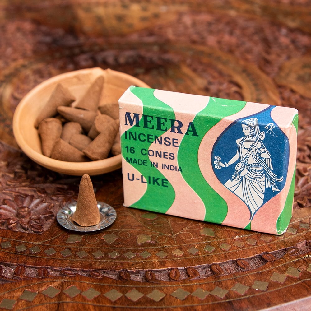 新品なのに古めかしいパッケージも形がいびつなのも愛らしい、昔ながらの手作りのコーン香です。クリシュナ神を夫とみなすほどクリシュナに帰依した聖女ミーラ(またはミラバイ)をテーマに、種々の花々をモチーフとしたお香が展開されています。■デリーの老舗Gulabsingh Johrimal