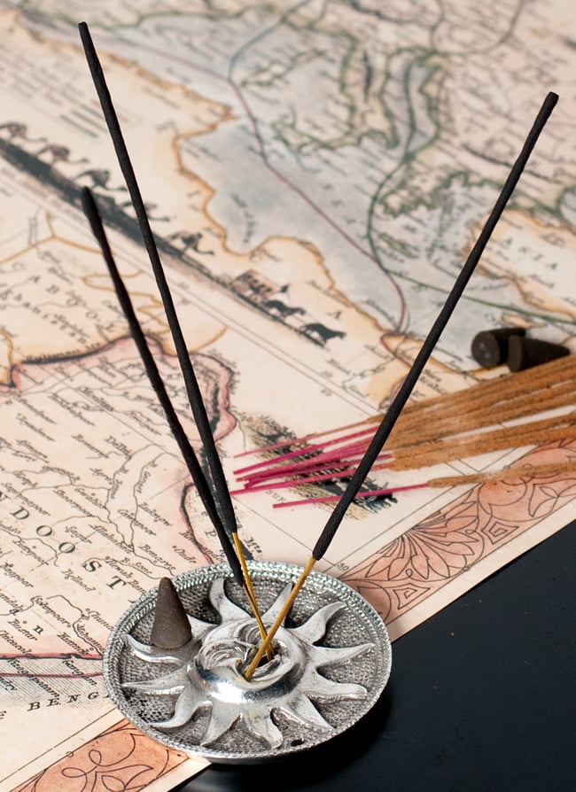 ![太陽神スーリャ ホワイトメタルのお香立て[9.5cm] 2 - 実際にお香を使用するとこのような感じになります。](https://www.tirakita.com/ind_inshld/Photos/ind_inshld_632_2b.jpg)