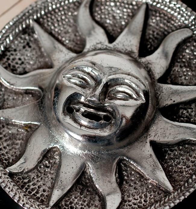 ![太陽神スーリャ ホワイトメタルのお香立て[9.5cm] 5 - 裏面の写真です。こちらも装飾されております。](https://www.tirakita.com/ind_inshld/Photos/ind_inshld_632_5b.jpg)