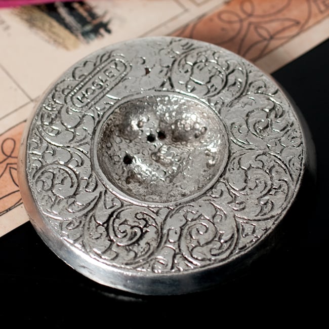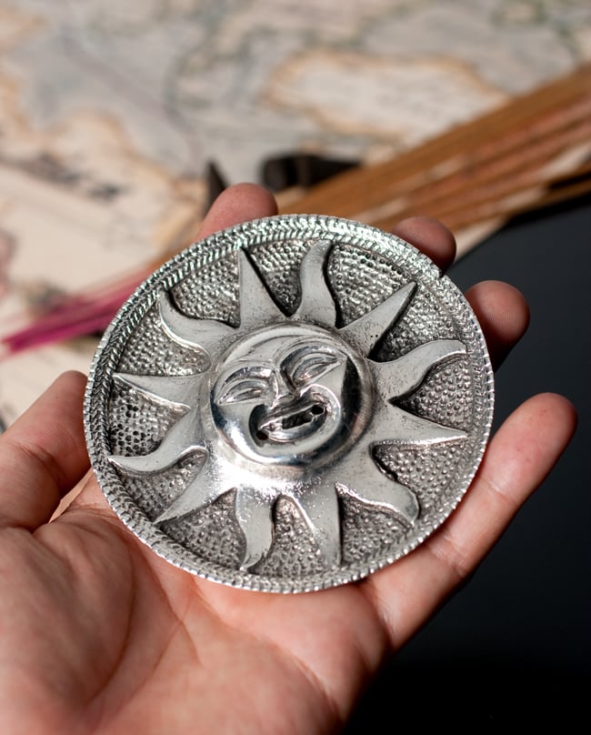 ![太陽神スーリャ ホワイトメタルのお香立て[9.5cm] 4 - お皿部分も広いので、コーン香を置いたりもできます。](https://www.tirakita.com/ind_inshld/Photos/ind_inshld_632_4b.jpg)