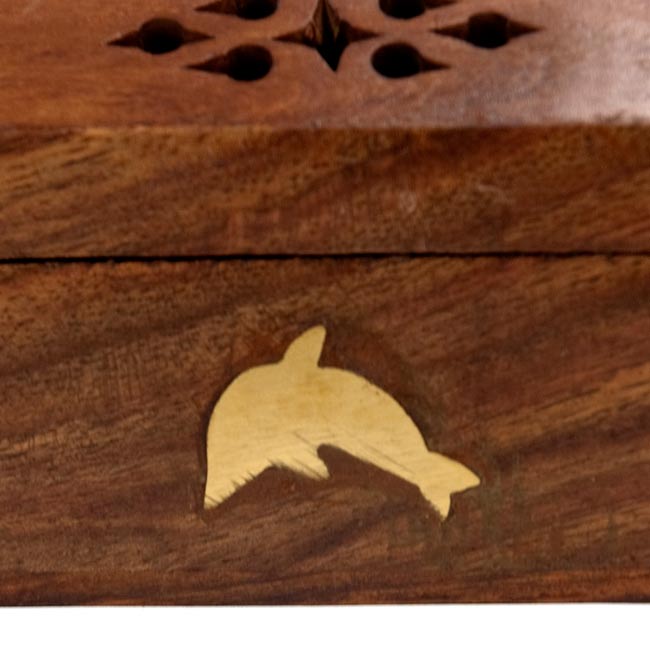![木製箱型香立て[ドルフィン] 2 - 蓋を開けたところです。穴にお香をさして使うことが出来ます。燃えているお香が木にくっつくことがありますが、木が燃える事はありません](https://www.tirakita.com/ind_inshld/Photos/ind_inshld_431_2b.jpg)