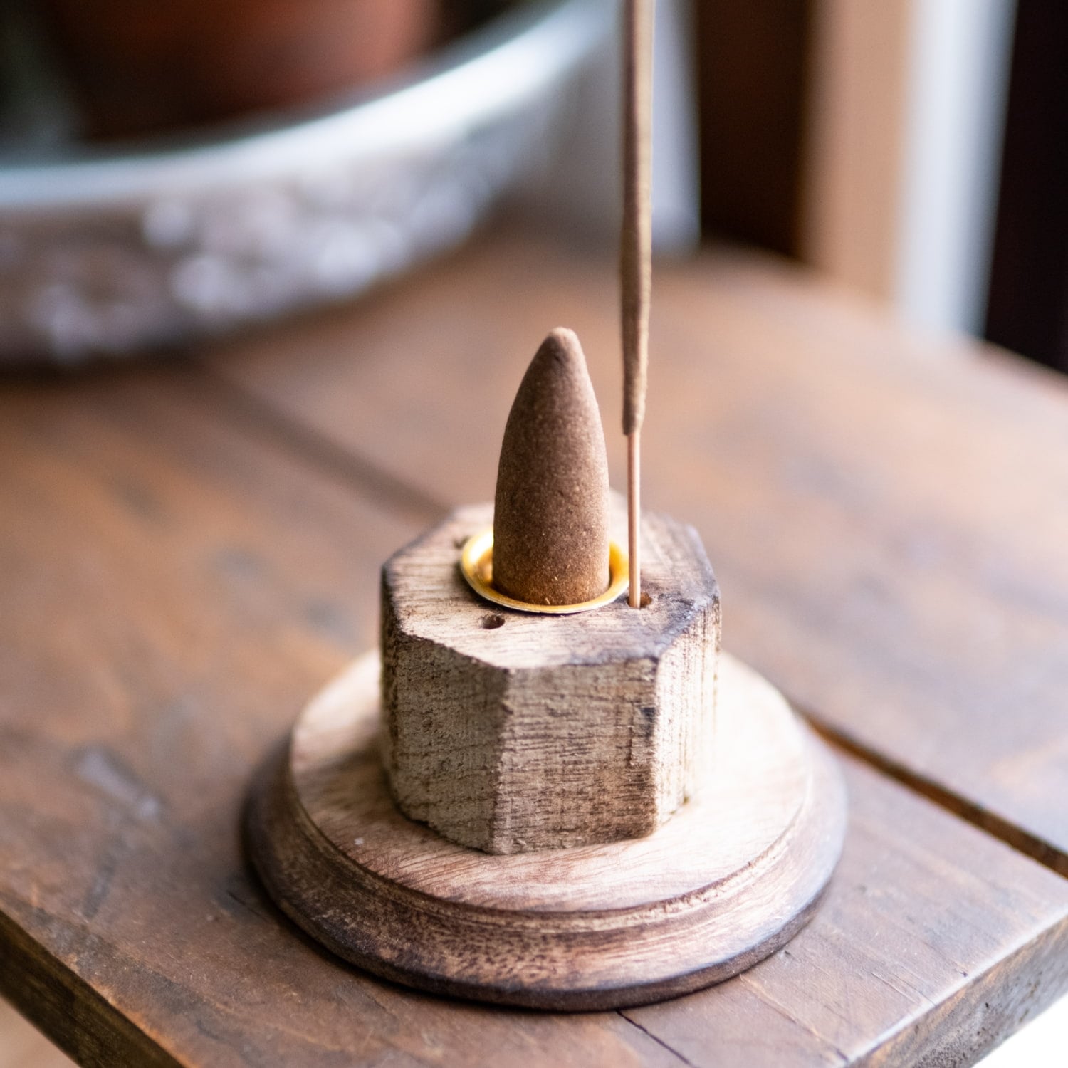 実際にお香を焚いてみましたが、タワーの内側を伝って、上の方の模様の隙間から煙が分かれて出てくるのが、見てて面白く神秘的です。前のお皿式のお香立てより香りが広がりやすい感じがします。