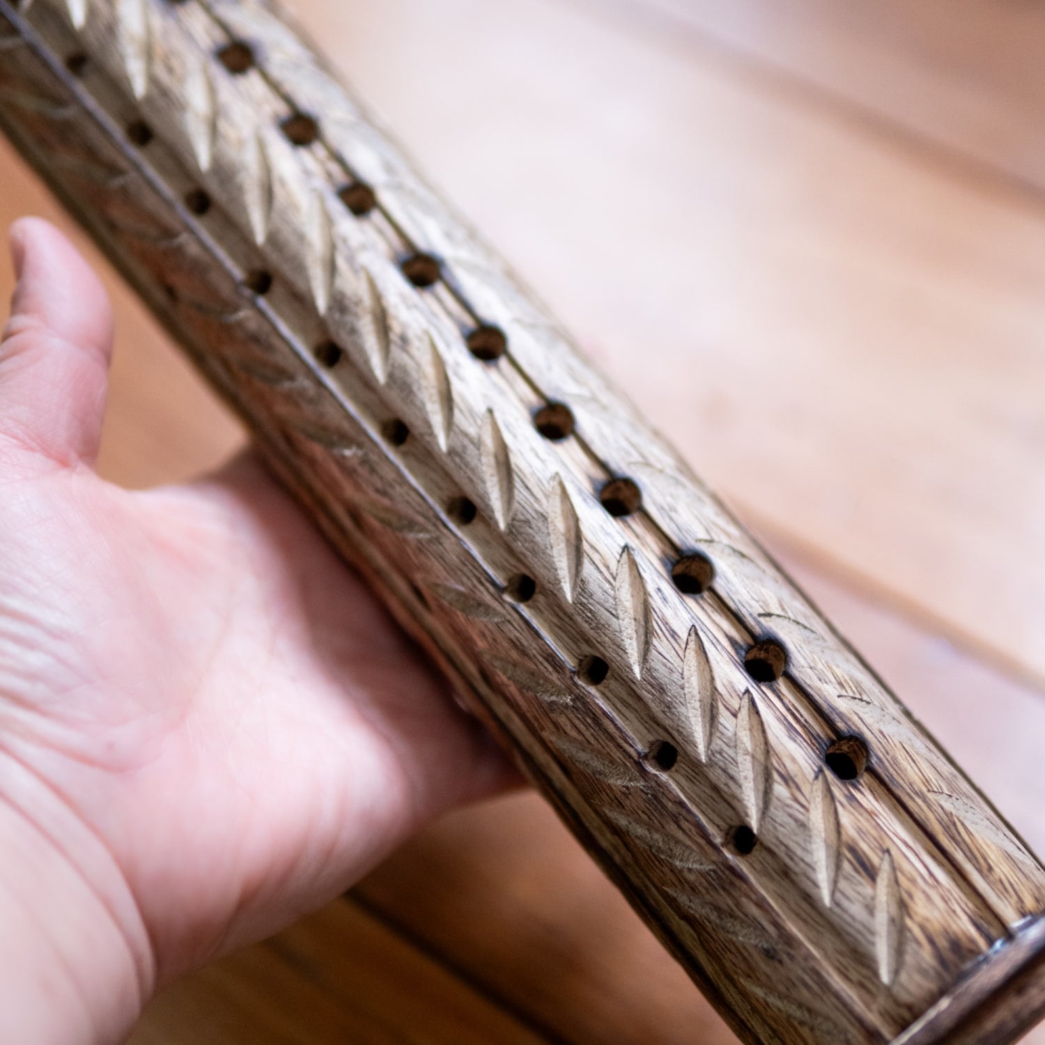 写真にも載っていますが、木彫りの模様は結構雑な感じで…ある意味そこも味ですねw