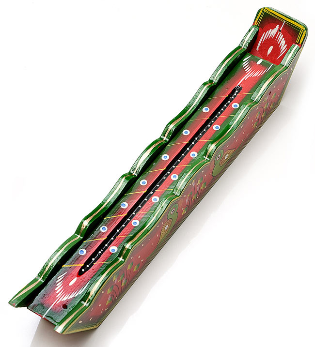 木製ハンドペイントお香立て - 孔雀