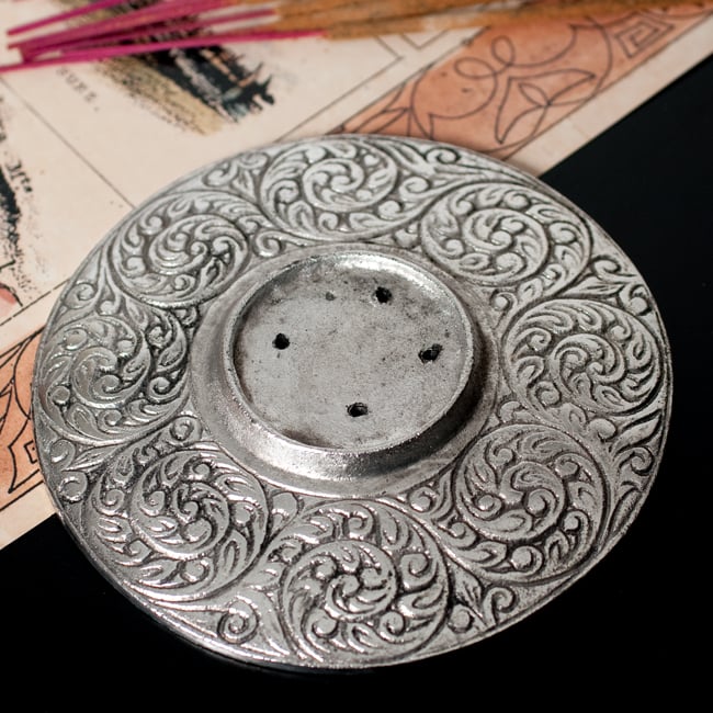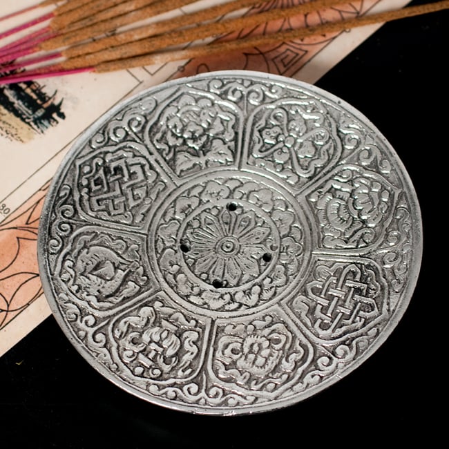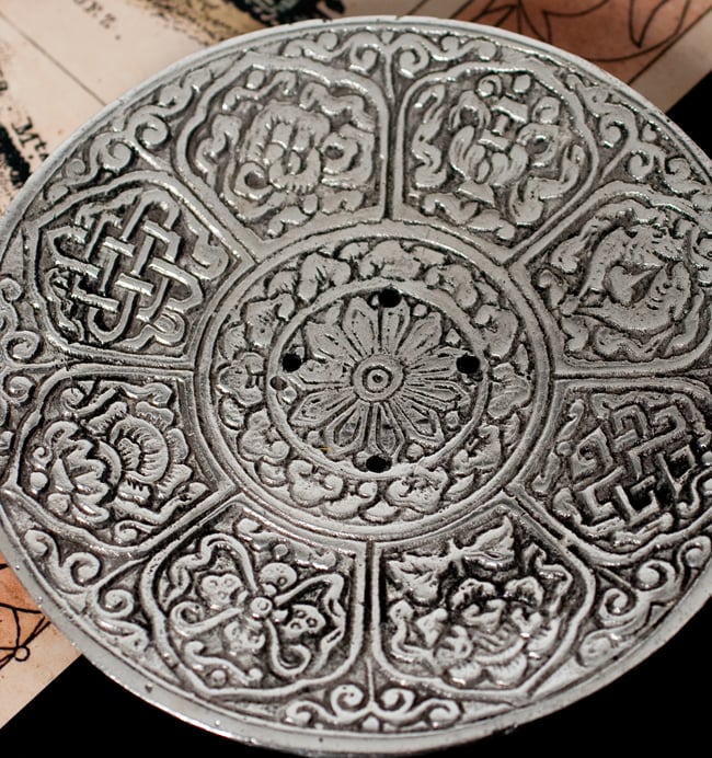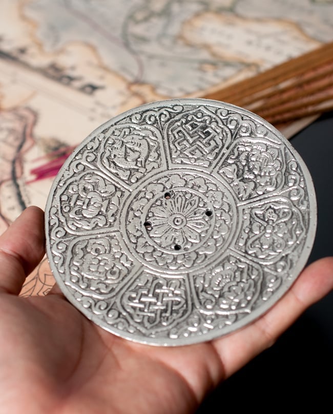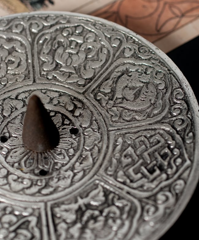 ![幸運の八吉祥柄 ホワイトメタルのお香立て[12cm] 4 - お皿部分も広いので、コーン香を置いたりもできます。](https://www.tirakita.com/ind_inshld/Photos/ind_inshld_634_4b.jpg)