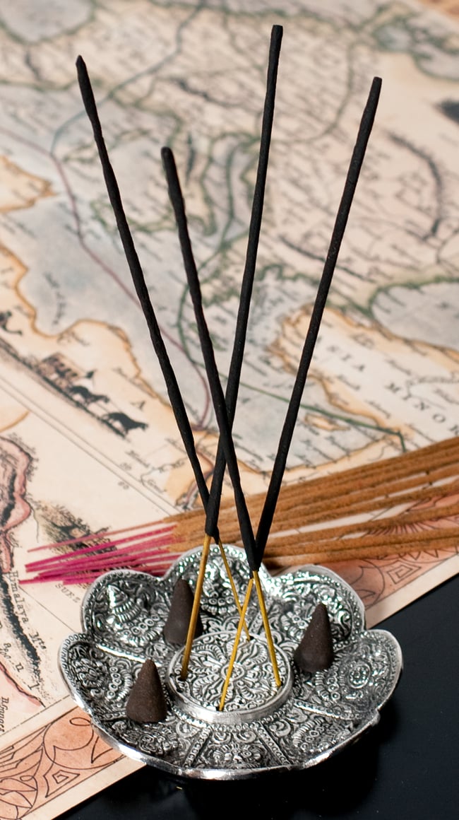 ![幸運の八吉祥柄と交差金剛杵 ホワイトメタルのお香立て[11.5cm] 2 - 実際にお香を使用するとこのような感じになります。](https://www.tirakita.com/ind_inshld/Photos/ind_inshld_635_2b.jpg)