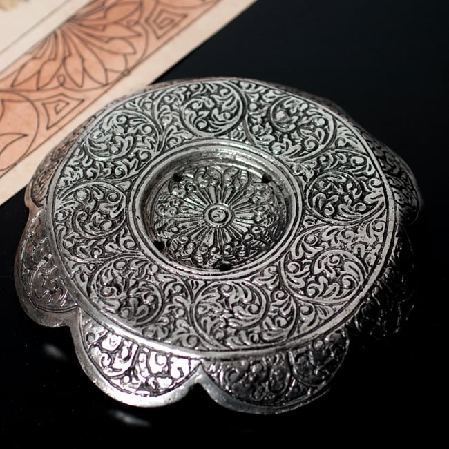 立体的なエンボスが綺麗なホワイトメタルのお香立てです。