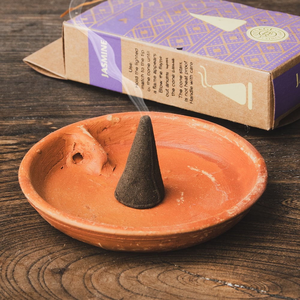 【6個セット】素焼きの素朴なネパール お香立て ロープ香、コーン香用 小物入れにも 通販店