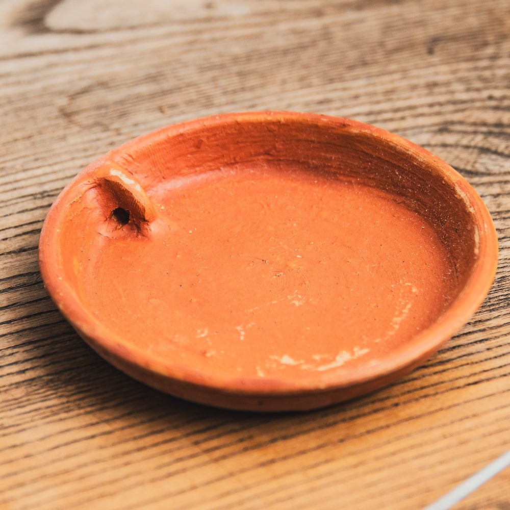 シンプルな素焼き皿は手づくりならではのゆらぎがなんともほっこりするてざわり。お香立て以外にも小物入れなど色々な活用方法がありそうです。あなただけの使い道をぜひ見つけてみてください。