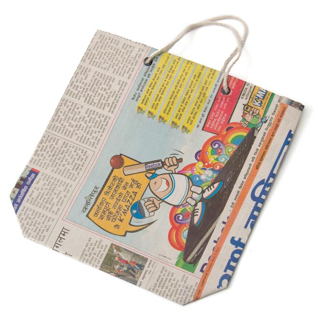 このエコバッグ、新聞紙で作られているのですごく丈夫!!と言う訳ではありません。でも、見た目よりは結構丈夫です。書類を持ち運んだり、衣類を持ち運んだり、ちょっとお買い物に行ったりするには十分役に立ってくれると思います。中には現地の人のメモ書きが残っている物もありますよ。これぞ本当のリサイクルですね。