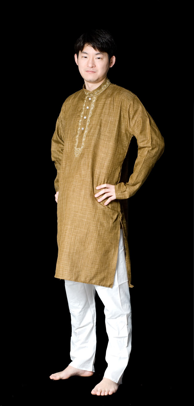 匿名希望様 〔各色あり〕比翼仕立て クルタ・パジャマ上下セット インドの男性民族衣装