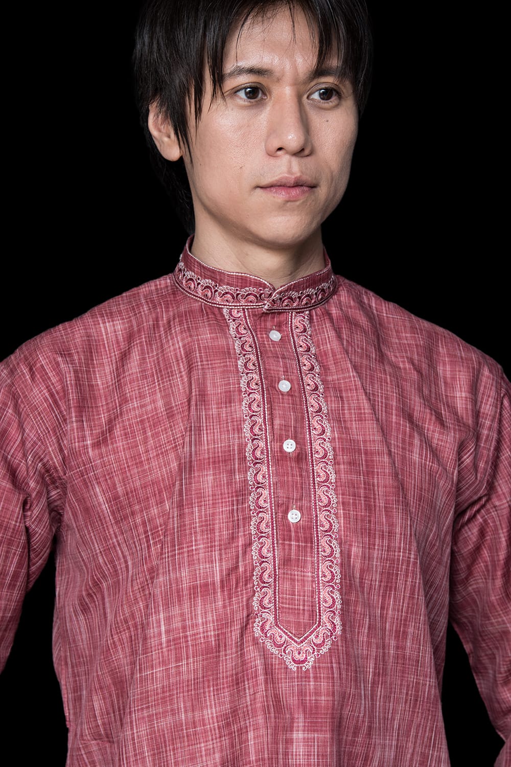 匿名希望様 〔各色あり〕比翼仕立て 更紗刺繍入り クルタ・パジャマ上下セット インドの男性民族衣装