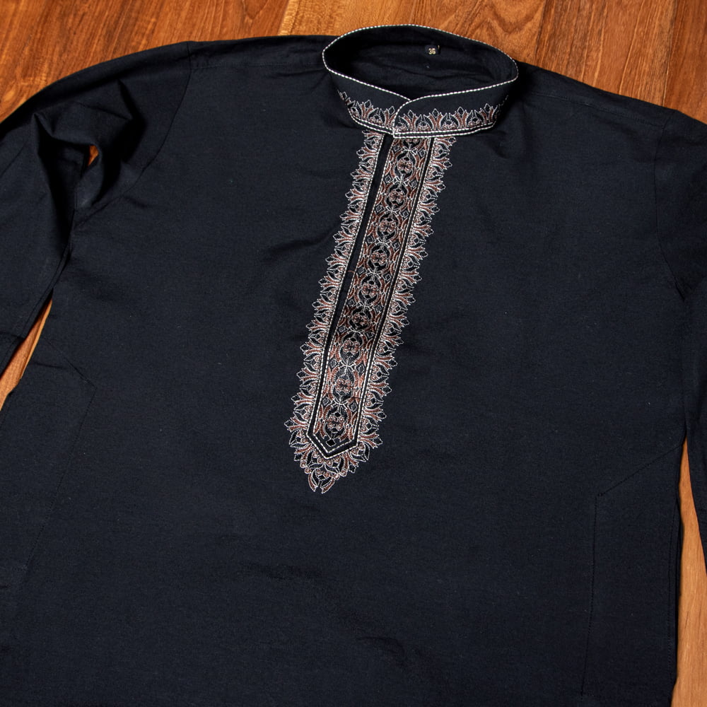 比翼仕立てのブラック クルタ・パジャマ上下セット インドの男性民族衣装の類似商品