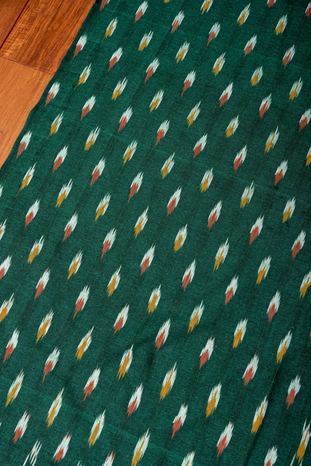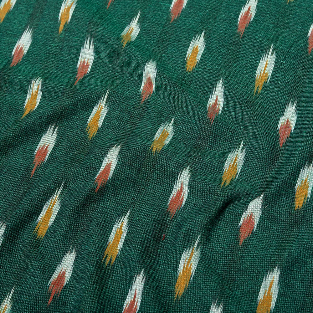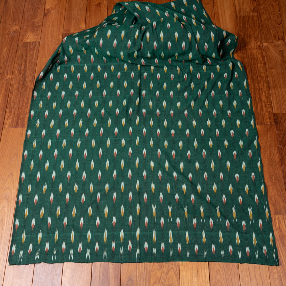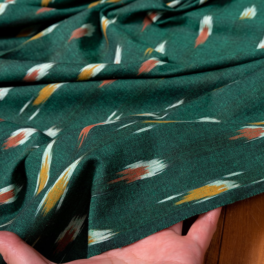 〔1m単位切り売り〕インドの伝統絣織り布 イカット織り生地 〔幅約112cm〕 - グリーン系