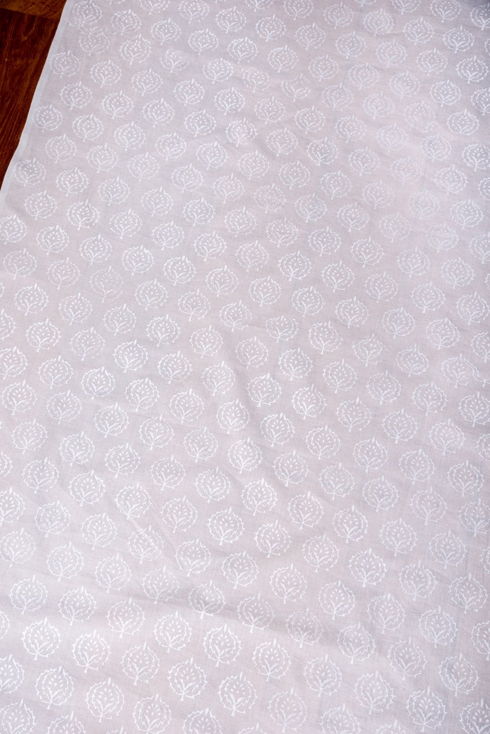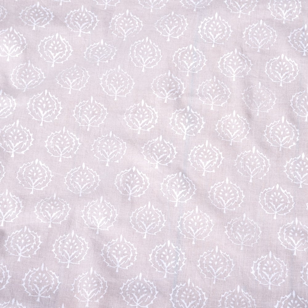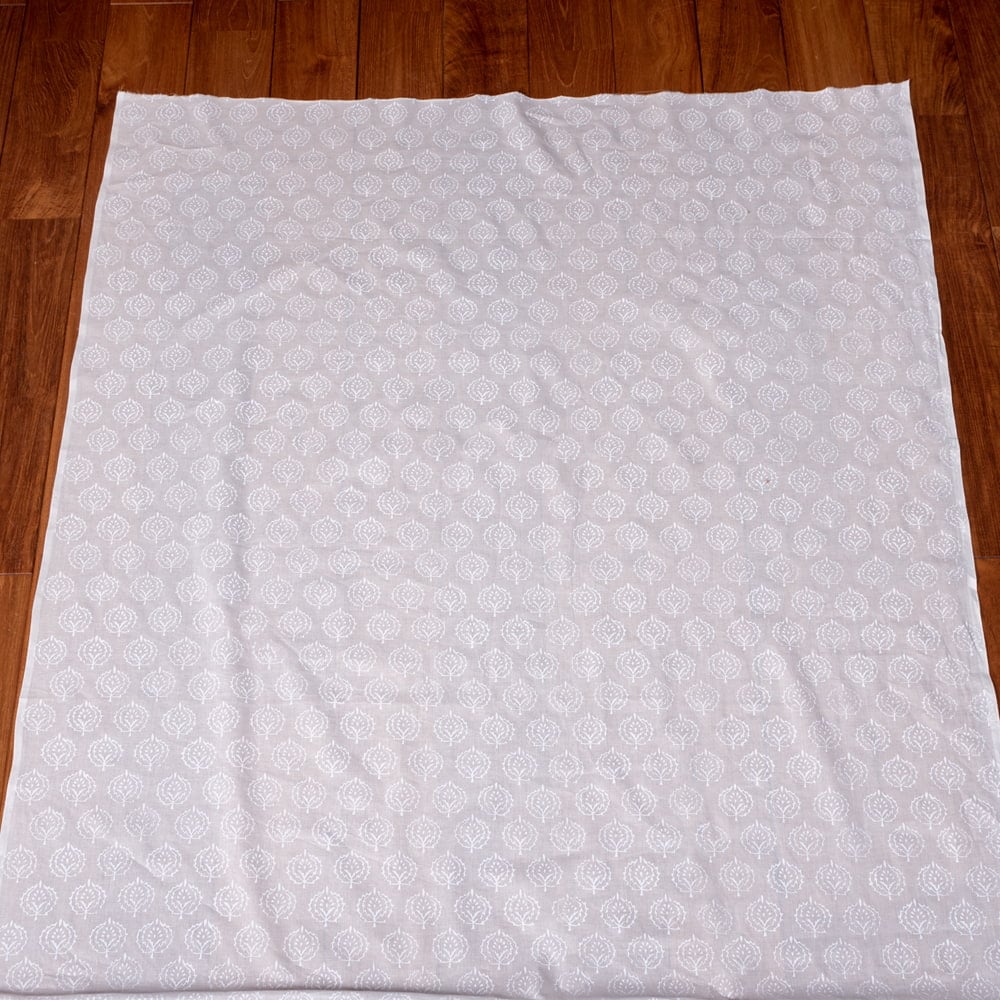 〔1m単位切り売り〕ジャイプル職人手作り サフェードのボタニカルデザイン インド伝統の木版染め更紗生地〔幅約106cm〕