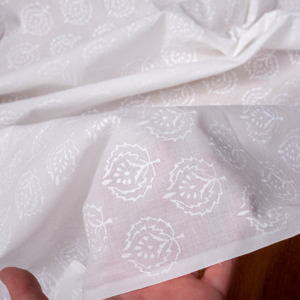 〔1m単位切り売り〕ジャイプル職人手作り サフェードのボタニカルデザイン インド伝統の木版染め更紗生地〔幅約106cm〕 通販店