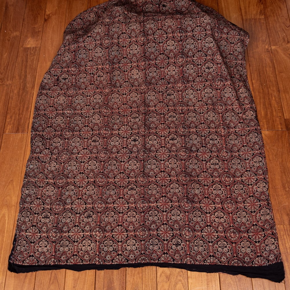 〔1m単位切り売り〕アジュラックプール村からやってきた 昔ながらの木版染めアジュラックデザインの伝統模様布〔幅約109cm〕 - ブラック系の類似商品